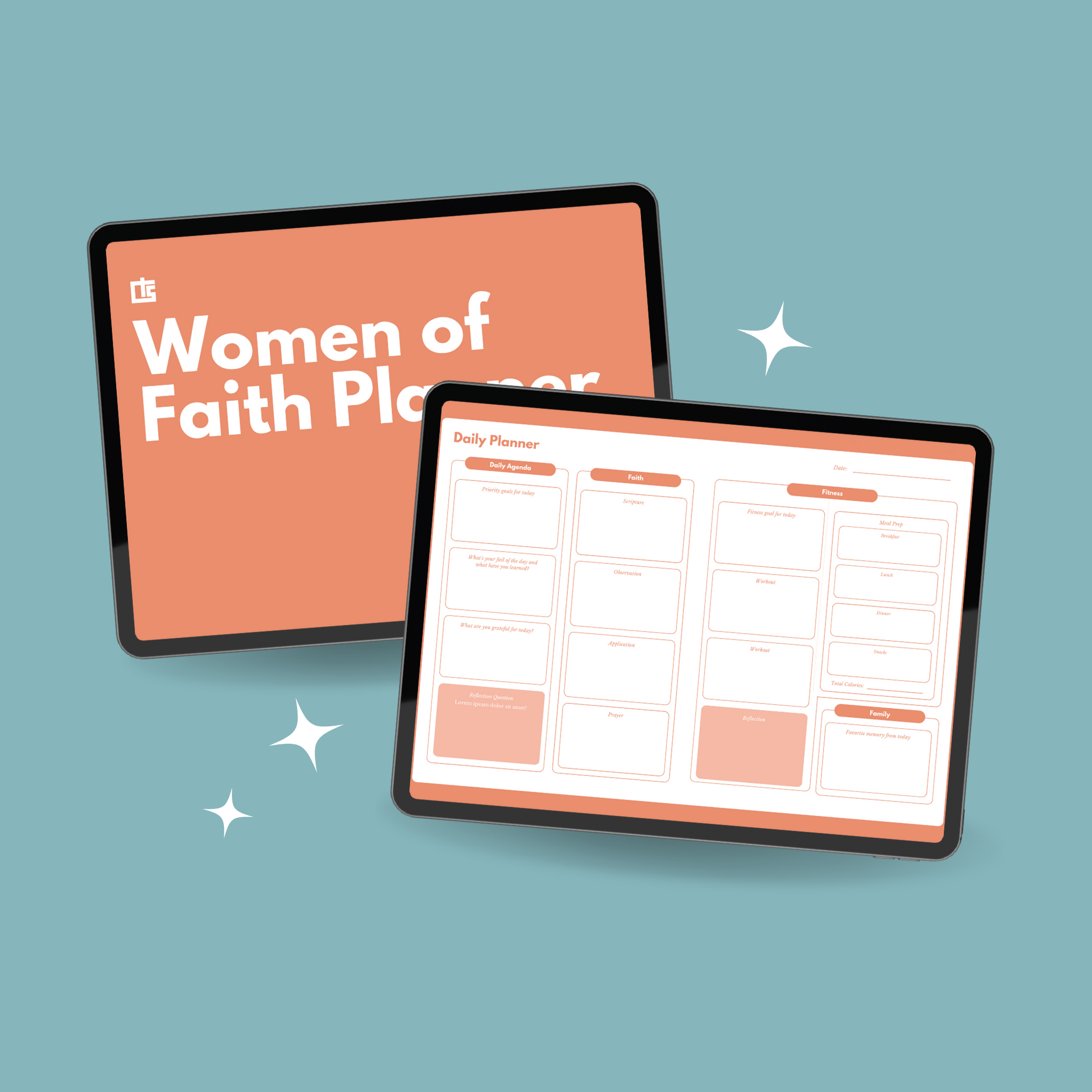 This digital planner was created with all Women of Faith in mind. The planner focuses on 4 Quadrants: Family, Fitness, Finances, and Faith. It is the Full Mindset Kit for any Women of Faith to not only stay organized but track goals and blessings God has provided.